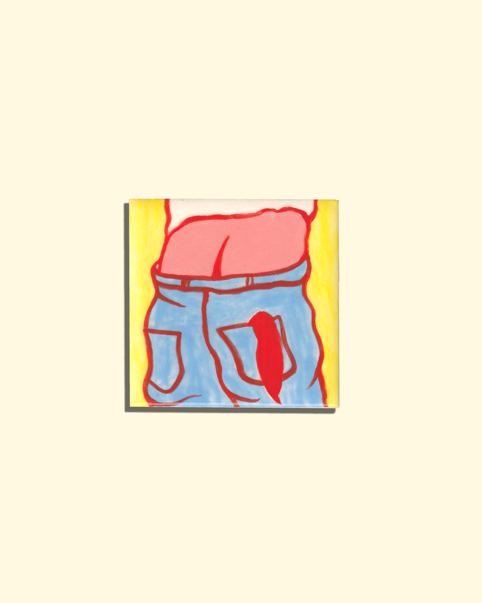 Red hanky, right pocket in washed out jeans. This ongoing series of 'Flag' tiles celebrates the gay Hanky Code, also referred to as Flagging, predominantly used in the 70s and 80s.