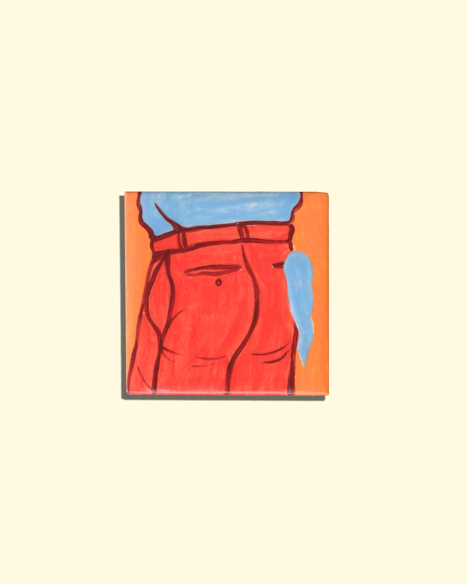 Light blue hanky, right pocket in red suit trousers. This ongoing series of 'Flag' tiles celebrates the gay Hanky Code, also referred to as Flagging, predominantly used in the 70s and 80s.